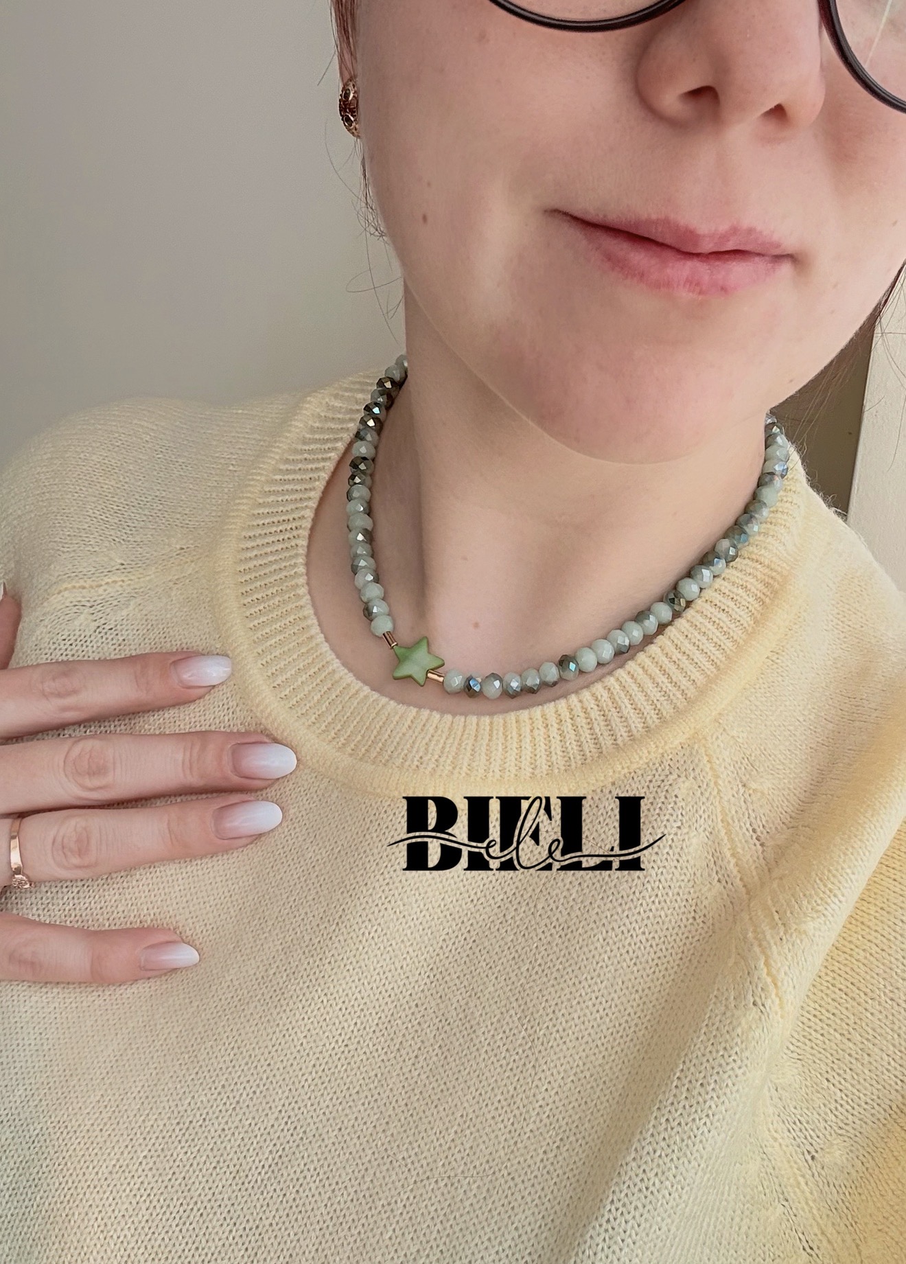 Kaklo vėrinys, žalias su žvaigždute.